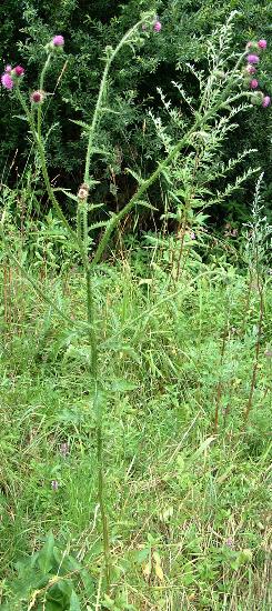 Projekt PflanzengalerieBlütenpflanzen im Bereich der Gemeinde Finnentrop und der näheren UmgebungCarduus personata - Kletten-Distel Korbblütler - Asteraceae (Compositae) ![]() Lenneufer bei Frielentrop - Klärteiche unterhalb Lenhausen - - - Die Kletten-Distel bevorzugt nasse Füße. Sie ist in Süddeutschland zu Hause, gilt in Hessen als nördlichstem Verbreitungsgebiet als potentiell gefährdet und kommt in NRW offiziell nicht vor. Unser Fund dürfte also an der äußersten Nordwest-Grenze des Verbreitungsgebietes liegen. |