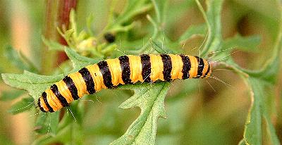 - - - Manche Pflanzen dienen den Raupen bestimmter Falter als Wirtspflanzen. Der Falter Hipocrita jacobeae - zu deutsch: Blutbär - ist auf das Jakobs Greiskraut als Futterpflanze spezialisiert. Dies verrät ja auch sein lateinischer Name. Notfalls gibt er sich aber auch mit Huflattich oder Pestwurz zufrieden. |